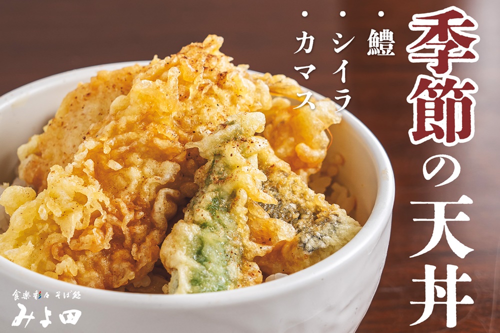 現在ミニ丼は、季節限定の「焼肉丼」と「えびかに天丼」、定番の「季節の天丼」と「まぐろたたき丼」の4種類の中からお好きなものをお選びいただけます。