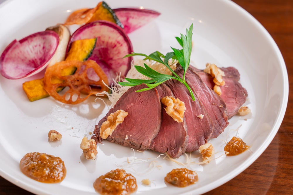 メインの牛肉には、信州の風土が生んだ「りんご和牛」のリブロースを使用。