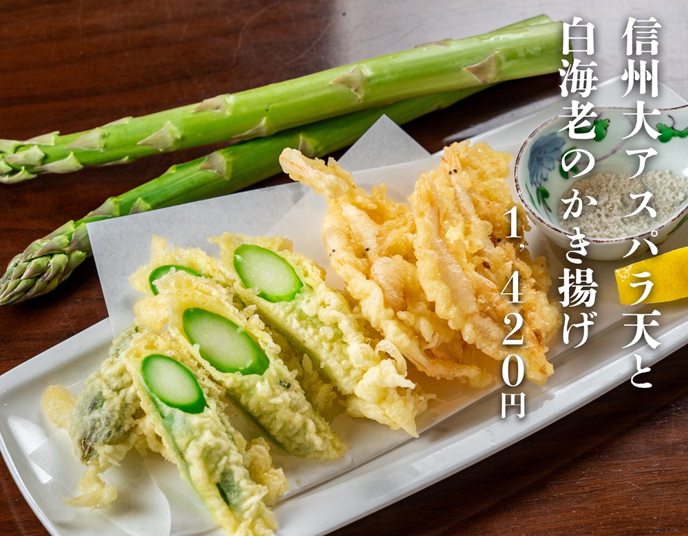 甘みがありふわふわ食感のかに天と、プリっとした歯ごたえの海老天をぜひお楽しみください。