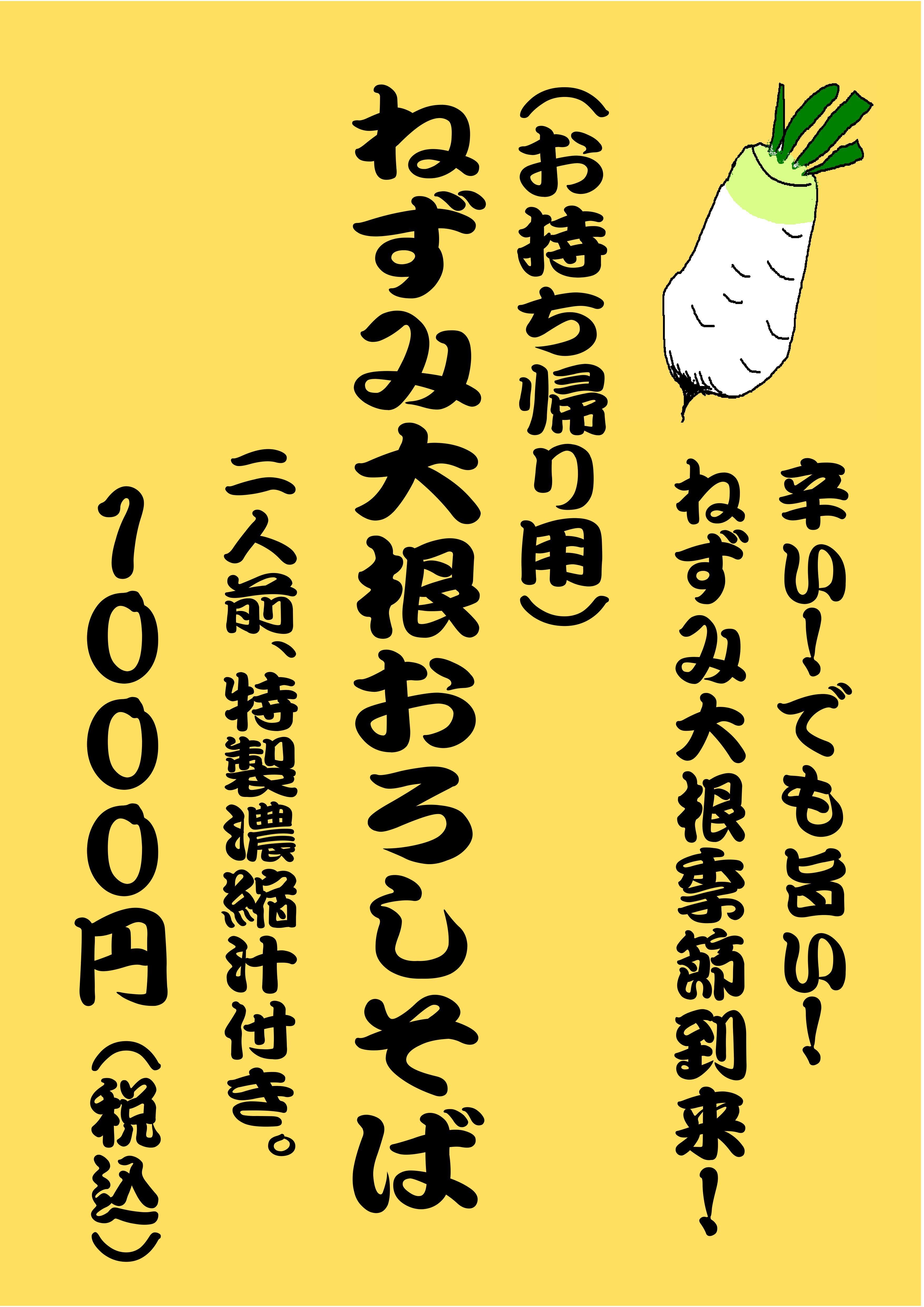 当店で人気の「辛い!」「でも旨い!」で、おなじみの「ねずみ大根そば」
