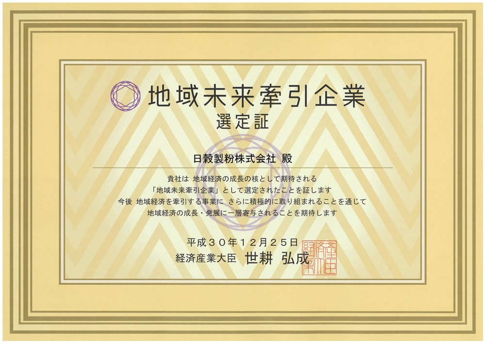 この度、日穀製粉株式会社が、経済産業省の「地域未来牽引企業」に選定されました。