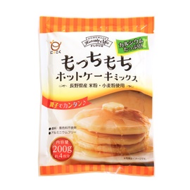 長野県産米粉・小麦粉を使用した、カルシウムが手軽に摂取できるもっちもち食感のホットケーキミックスです。
