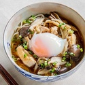 鶏と温泉卵のきのこそば