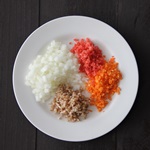 - 軽く混ざったら、1でみじん切りにした野菜を入れ、再度混ぜ合わせる。