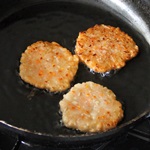 - フライパンに多めの油を入れ(揚げ焼きになるくらいの量)、3で混ぜ合わせたものを食べやすい大きさになるようスプーンですくい入れる。両面に色が付いたら器に盛る。