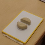 - 円盤になったところで包丁で2 つに分け、円盤を2つ作る。