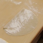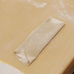 - まな板に多めに打ち粉をふり、延ばした生地2枚を重ねて打ち粉をふる。