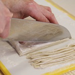 延ばした生地を2枚重ねて、いよいよ「切り」に挑戦!