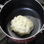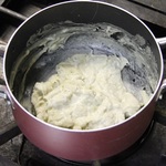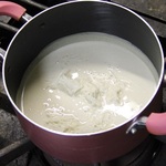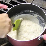 - 少し固まってきたら、1を入れさらにかき混ぜる。