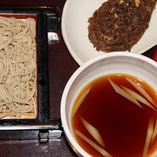- そばをゆでて冷水でしめて、しっかり水を切ってから器に盛り付ける。