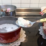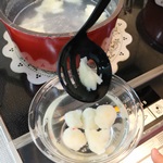 - 沸騰したお湯にスプーンですくって形を整えた2を入れてゆでます。