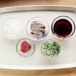 - 大根おろしの水気を軽く切り、器にサバ缶、大根おろし、ブロッコリースプラウト、種を取りたたいた梅をのせ、めんつゆを注ぐ。