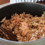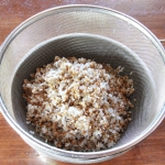 - 炊飯器に1と2、調味料Aを加え、炊き上げる。