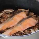 旬のきのこと鮭を使った秋を彩る炊き込みごはん。具材と一緒に炊き込むだけで簡単に作れます。