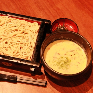 - そばをゆで、冷水でしめる。水を切った後、器に移す。