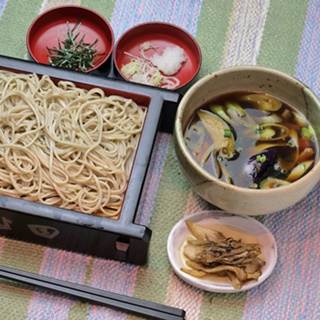 - そばをゆで、ゆで上がりましたら冷水で水洗いし、よく水を切って器に盛ります。2と4をそれぞれ器に盛り、薬味をのせてお召し上がりください。