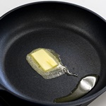 - フライパンにオリーブオイルとバターを入れ、火にかける。