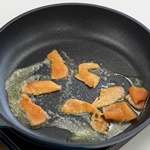 - 2のスモークサーモンを入れ、表面の色が変わる程度炒める。