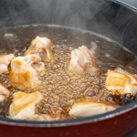 工程1で鶏から出た脂は拭きとらずそのまま使ってください。そば米との相性もよく、旨味がアップします!