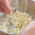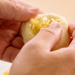 チーズを包むときは両手の親指でチーズを中に押し込むようにするとうまく包めます。