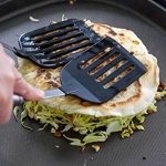 ひっくり返すのは少し難しいですが、具材が散らばってしまってもヘラで集めて上から押さえれば大丈夫!