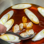酒蒸しで出た汁は次の工程で使うので残しておく。