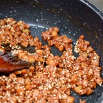 工程2でみりんと鶏ひき肉を合わせてから炒めると、だまになりにくくポロポロとしたそぼろになります。