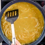 - 鍋にサラダ油大さじ2をひき中火にかけ、玉ねぎを入れてしんなりするまで炒める。