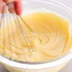 - ボウルに天ぷら粉(花ころも)、砂糖、ベーキングパウダー、塩を入れ軽く混ぜ、溶き卵と牛乳を入れて混ぜ合わせる。