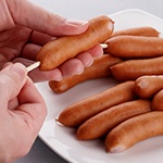 - ウインナーに竹串をさし、油を薄くひいたフライパンで炒めて一旦お皿に出しておく。