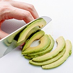 アボカドを薄くスライスしていますが、切りにくい場合は1㎝角でもOK!