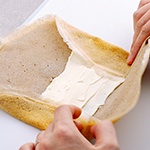 - ガレットの中央部分にクリームチーズを塗り広げ、クリームチーズを包むように4辺を折りたたむ。