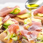 - アボカドは薄くスライスし、生ハムは一口サイズに切っておく。