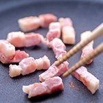 - ベーコンを薄く焼き色がつく程度軽く炒め、お皿に移しておく。