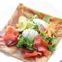 ニジマスとブラウントラウトを交配させた、独自の新品種の信州サーモン。そばを使ったガレットと組み合わせれば、信州ならではの『おもてなし』にぴったりの一品です。