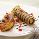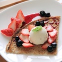 甘酸っぱいキウイとラズベリーに、クリーミーなチーズを合わせた爽やかなデザートガレット。そば粉生地の香ばしさとフルーツのジューシーさが絶妙です。