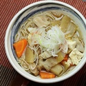 冬の野菜をたっぷり使った具沢山の豚汁をかけていただく温かいおそばです。