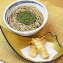 春先が旬のめかぶと筍を使った温かいおそばの献立です。