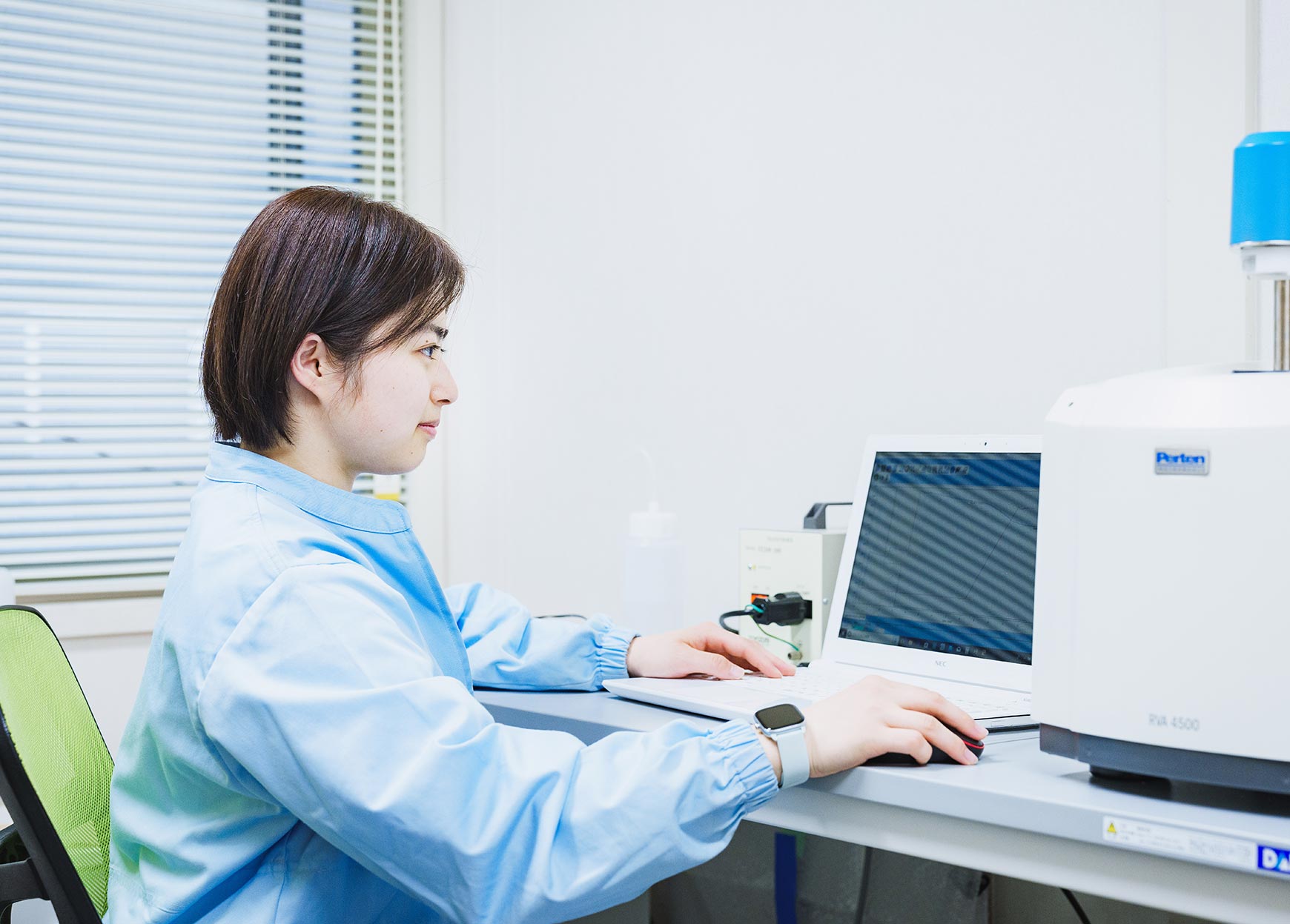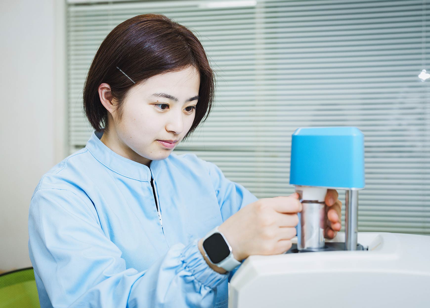 - 開発本部は、主にそばの機能性成分の研究や新品種の調査を行う第一課と、そばやそば粉に関する新商品開発や研究開発を行う第二課があり、私は第一課に所属しています。新商品の開発は月1回、座談会形式で1人1案以上アイデアを出し合って検討。上司の承諾を得られたら、自分の研究テーマとして開発を進めます。毎月新しいアイデアを出すのは苦戦しますが、課を越えて協力しあったり、先輩社員や上司にアドバイスをもらうことも多々。部内は若手社員が多くにぎやかな雰囲気で、気軽に情報交換をしています。また、部署を越えて製造部や管理部にも相談することで他部署との交流が生まれ、コミュニケーションを取るきっかけにもなっています。