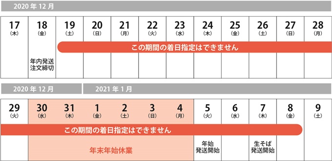 ※2020年12年19日(土)~2021年1月8日(金)の配達日のご指定はお受けできません。
